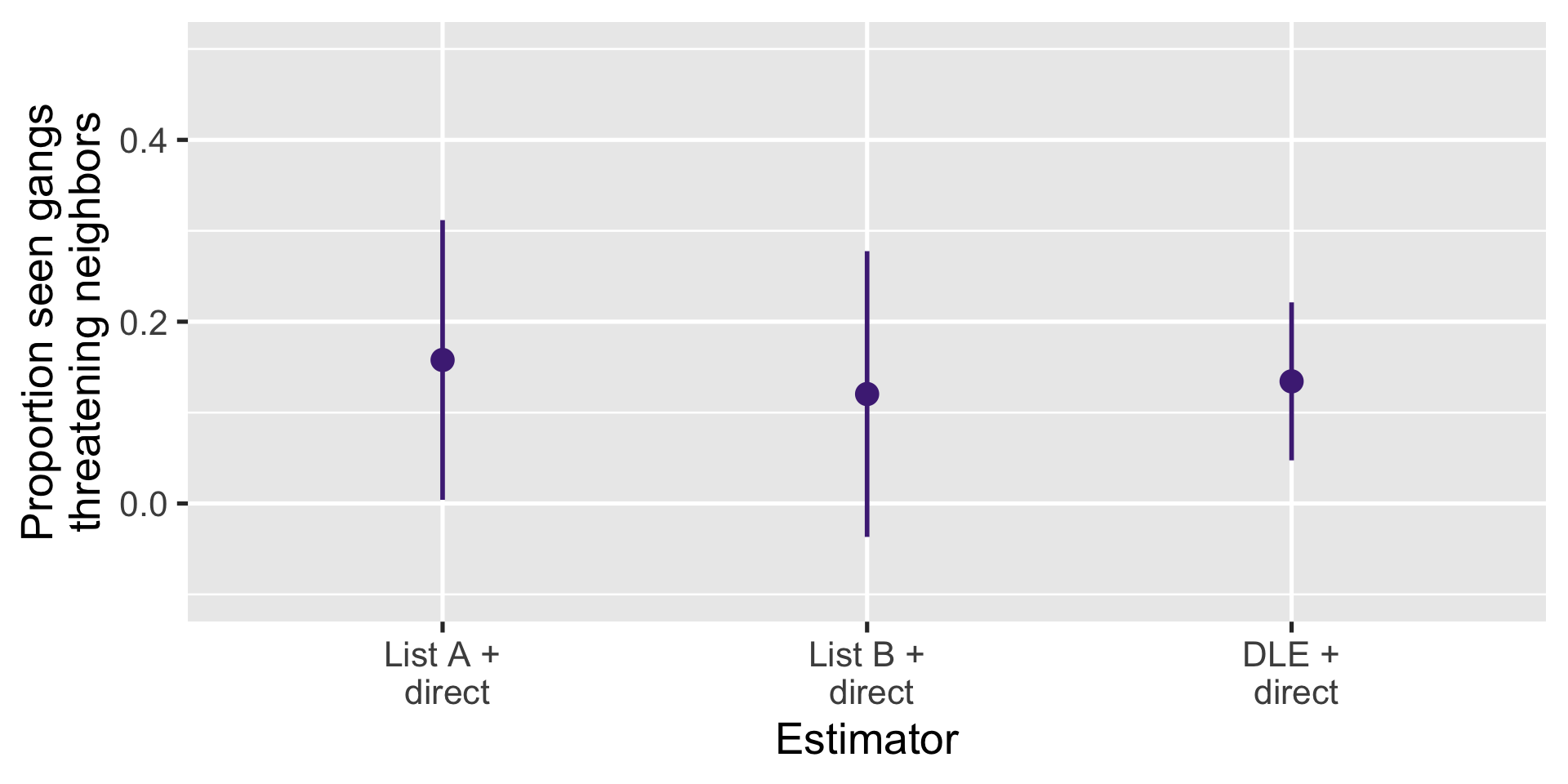 \[ \hat{\tau}_A = \widehat E[Y_{iA }(1)] - \widehat E[Y_{iA }(0)] \]